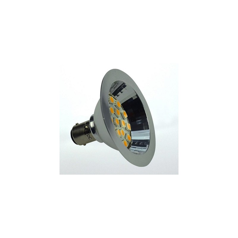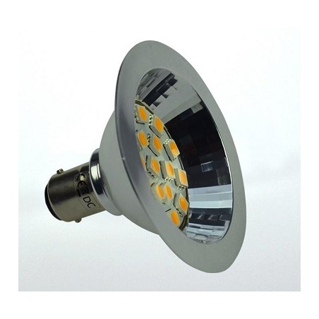 Unsere 12V BA15d LED-Leuchtmittel mit dem Bajonettsockel sind im Niederspannungsbereich und anzusiedeln (Marine, Boot, Camping, Wohnmobil usw.). Marine-Polung: +Plus und -Minus auf den 2 unteren Kontakten! Die angenehme Lichtfarbe und die tolle Leistung von 2.7W eignet sich für den universellen Einsatz im 12V (10-30V) Bereich und für die wohnliche Stimmung (nicht als LKW/KFZ Bremslicht verwendbar). LED-Lampe BA15d, Spot, 2.7W, DC10-30V, 18 LED's, 3000K, 250Lm, 70x47/22mm, Ersatz 25W, dimmbar, 7.0 x 4.7/2.2, 0-10V PWM, Amplitudendimmung.