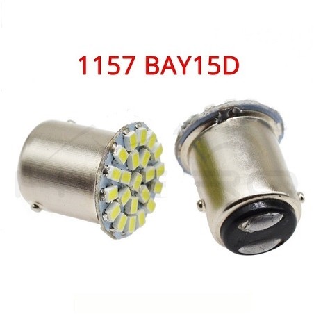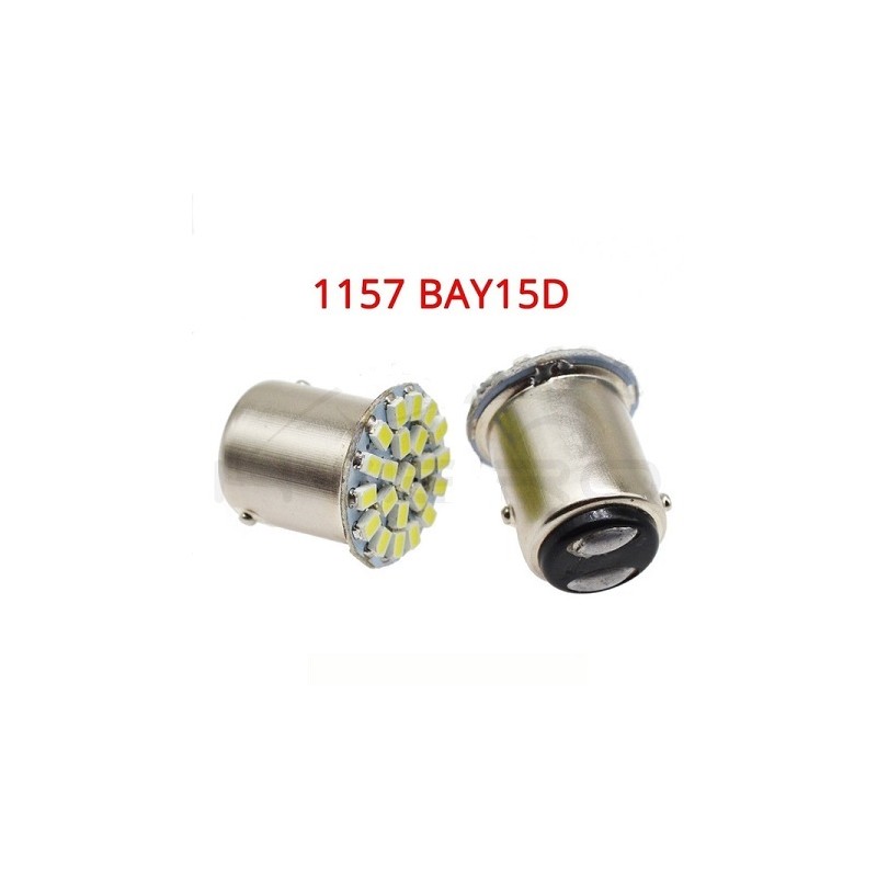 LED Lampe BAY15d P21W, 1157, R5W, 2.0W, 22 LED Chips, 12V DC, 6000K, 200/250Lm, 25 x 20mm, 2 x Plus unten