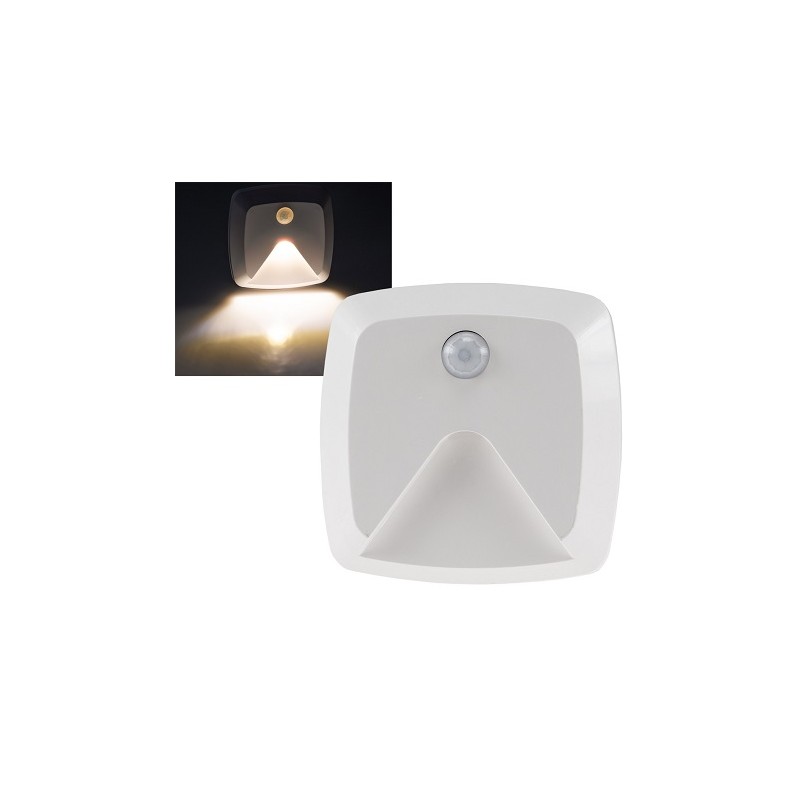 Komfortable Orientierung im Dunkeln - dieses Treppenlicht schaltet sich durch PIR-Sensor automatisch ca. 30 Sekunden lang an und weist Ihnen den Weg. Kein lästiges "Schalter suchen" oder stolpern. Dämmerungssensor schaltet bei =20Lux. Betrieb mit 3x AAA Microbatterie (nicht dabei), Erfassungsbereich: 120° (ca. 1m Montagehöhe), 1x 0.5W LED, 12lm, Sensor-Reichweite ca. 5m bei 120°, Einschaltdauer ca. 30 Sek. Befestigung via Schrauben oder Klebepad LED Treppenlicht mit Bewegungsmelder, batteriebetrieb, 0.5W, 12Lm, warmweiss, 7 x 3.2, weiss, Kunststoff .