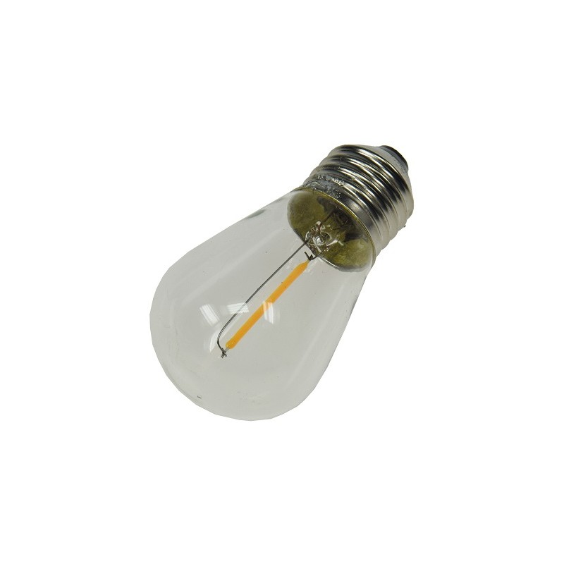 Niedervolt 12V/24V AC/DC E27 LED-Leuchtmittel mit dem grossen Schraubgewinde finden Sie im Photovoltaik-, Solar-, Camping- oder KFZ und Boot Bereich. Ihr vielseitiger und universeller Einsatz ist einfach einzigartig und fast unvergleichlich. Diese tollen LED energiesparenden Lampen finden Verwendung im Garten, im Wochenendhaus, im Wohnmobil, auf einem Boot usw. Dank der spez. Niedervolt 12V/24V Technik auch für den direkten Batterie- und Solarbetrieb geeignet. LED Lampe, Birne "Filament" E27, 12V DC, 0.8/1W, 12V, 2700K, 90Lm, 360 Grad, Ersatz 10W, klar, Glas/Metall, 12V DC.
