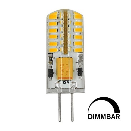 Diese dimmbare G4 und GU4 LED-Leuchtmittel mit dem Stiftsockel ist speziell für den Niederspannungseinsatz (12V DC) konzipiert worden (Fahrzeuge, Camping, Solar, Hobby usw.). Je nach Ausführung, Lichtfarbe und Leistung eignen sich die 12V G4 Leuchtmittel mit GU4 Sockel für den universellen Einsatz im Innen- oder Aussenbereich. LED-Stiftsockellampe G4, 3W, 12V DC, dimmbar, 3200K, 150Lm, 12x36mm, Ersatz 20W, 3.6 x 1.2, Silikon, Trafo/Dimmer müssen passen!.