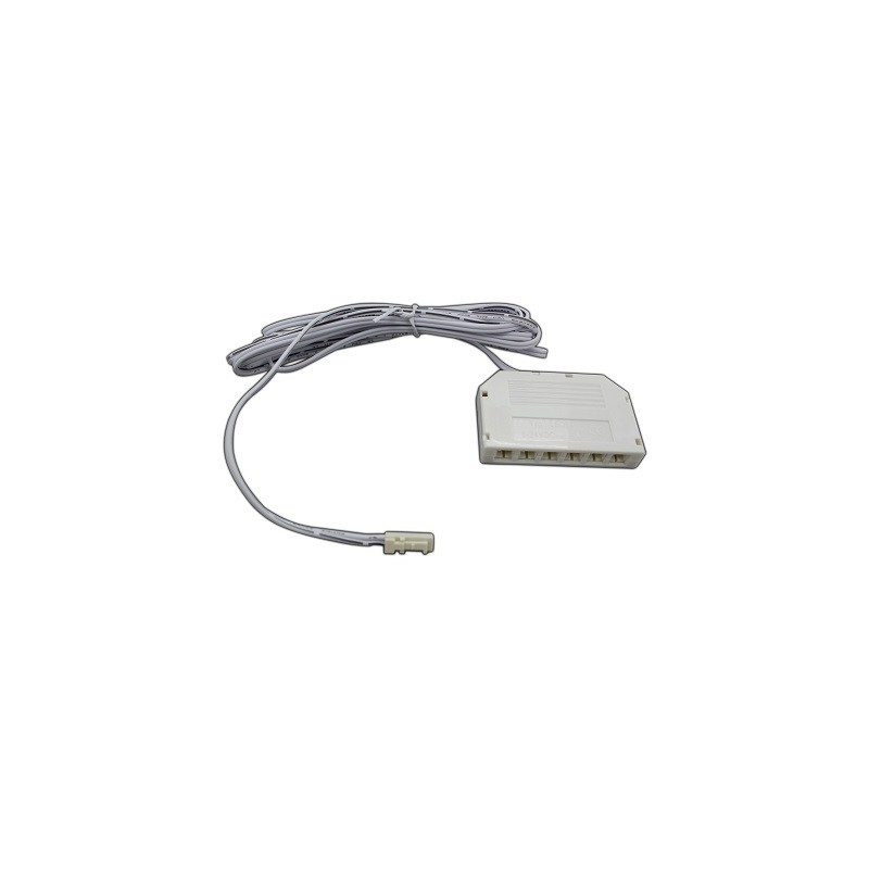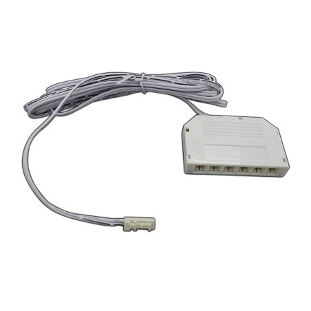 2 Meter Niedervolt-Verlängerungskabel mit Stecker und Buchse für LED SYS-SLIM System und Leuchtmittel. MiniAMP Stecker und Buchse für Niedervolt Spannung: 12-24 Volt DC. 2 Pol Verteilerbox "MiniAMP" 6 fach, 200cm, 2-pol. Litze an 6 Female-Buchsen, max. 3A, 200cm, weiss, AMP 6 fach Verteilerbox.