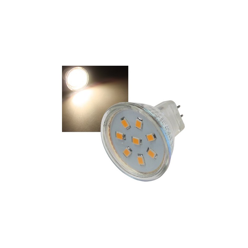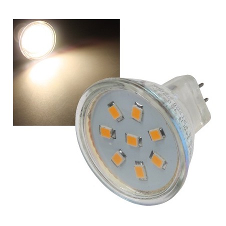 Die MR11 LED-Leuchtmittel mit dem GU5.3 Stiftsockel sind für den Niederspannungseinsatz konzipiert worden (Wohnbereiche, Büro, Fahrzeuge, Camping usw.). Je nach Lichtfarbe und Leistung eignen sich diese 12V DC universellen Leuchtmittel für den Innen- oder Aussen- Bereich. LED Lampe, Kaltlichtspiegel MR11/GU5.3, 2.0W, 12V DC, 3000K, 120Grad, 140Lm, 40 x 35, 8 hochmoderne 2835 SMD LEDs.