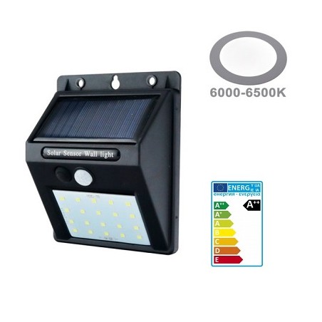 Kleine LED Solar Leuchte mit pfiffiger Technik. Kein Kabel legen, kein lästiges Ein- und Auschalten via Wandschalter. Leuchtet mit einer Akkuladung bis zu 6 Stunden. Dank der Sonne lädt sich diese Wandleuchte selbst auf und leuchtet 15 Sek. an z.B. der Garage, Hofeinfahrt oder im Garten. LiIon Akku 5.5V/800mAh. Erfassungsdistanz Bewegungsmelder bis 5 Meter. LED Solar Wandleuchte "SWL20", PIR, 20 LEDs, 6000K, 110Lm, schwarz, 5.5V Akku, IP54 wetterfest, 10 x 13 x 4.5, schwarz, Kunststoff, 20 helle LEDs.