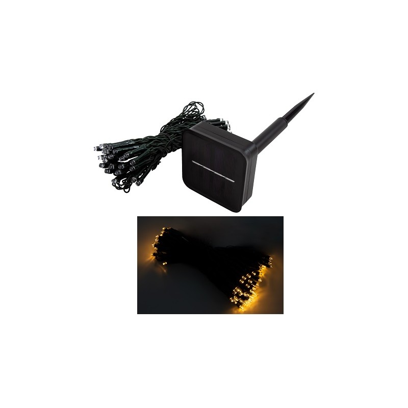 Dekorative Beleuchtung im Sommer und an sonnigen Wintertagen. Das Solarmodul kann uber einen Erspiess in den Boden gesteckt werden. Die Lichterkette kann mit Blinklicht oder Dauerlicht betrieben werden. Automatisches Einschalten bei Nacht. Die Solar Party Lichterkette mit einem NimH Akku: 1.2 V/600 mAh. Lichtfarben: warmweiss. Blink- oder Dauerlicht einstellbar. Gute Funktion auch an sonnigen Wintertagen! Verschiedene Lichteffekte einstellbar! LED Solar-Lichterkette "LSL-100", 0.6W, 100 LED, Mode, Separates Solarpanel und Batterien/Akku, wetterfest, 10+2m, Kunststoff, 100 LED, ww.