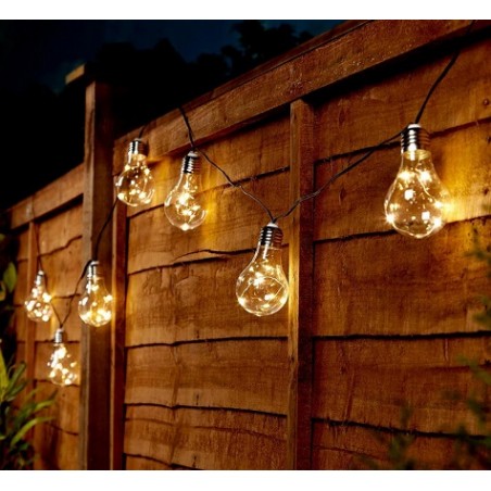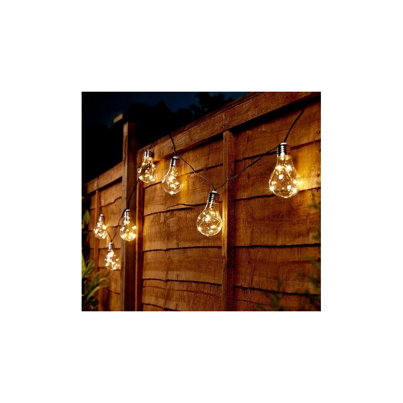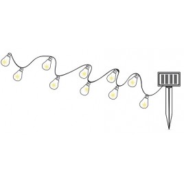 Wunderschöne wetterfeste Outdoor-Lichterkette mit insgesamt 3.8m Länge - grossartig für Garten & Terrasse, Restaurants und Bars. 10 Stk. A60 Filament/Vintage Lampen (nicht auswechselbar). 2m Zuleitung. Tag/Nacht Sensor! Für Montage an Wand und Decke. 2m Zuleitung. Alle 0.2m 1x Filament-Lampe. Solar-Panel mit integriertem Akku. Ein/Aus- und Modus-Wahltaster LED Solar-Lichterkette "Vintage", 10 LED Lampen, Warmweiss, inkl. separates Solarpanel und Akku, wetterfest, Länge: 3.80m, schwarz, Kunststoff, inkl Panel und 10 Leu
