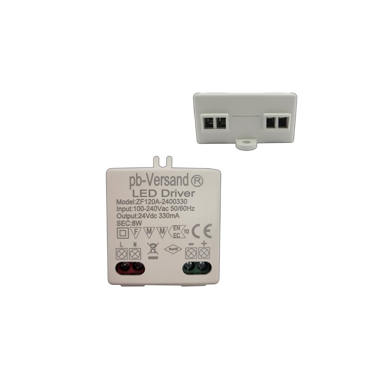 Mit diesem kleinen 8W 24V/DC LED Trafo oder Treiber können Sie unterschiedliche LED-Leuchtmittel und Installationen fachgerecht installieren. Die neue Generation des 8W Trafos ist sehr flach und klein konstruiert und ist fast überall einsetzbar. Der LED Trafo besitzt eine geringe Höhe/Einbautiefe von nur 20mm. Der 8 Watt LED Trafo ist für alle LED Leuchtmittel geeignet. Einfacher Anschluss über Schraubterminals (Eingang/Ausgang). Überspannungs - sowie Kurzschlussschutz. Mit MM-Zeichen (geprüft).