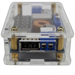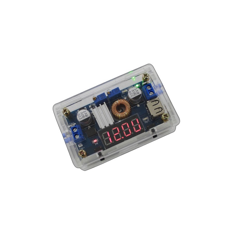 Der DC/DC Spannungsregler arbeitet mit einer Eingangspannung von 5-36 Volt und ist für etliche Anwendungsbereiche geeignet. Darüber hinaus verfügt der DC/DC Wandler einen USB Anschluss zum aufladen von Smartphones usw. Die Ausgangsspannung (1.25 - 32V) und der Ausgangsstrom kann über verschiedene Stellschrauben eingestellt und begrenz werden. Steuerbare Digitalanzeige für Ein- und Ausgangsspannung. Kein Verpolungsschutz! Step-Down DC/DC Wandler, 5-36 DC, 35/50W, Spannungsregler 5-36V, USB-Ausgang, Konstantspannung, 8 x 5 x 2.5, klar, Kunststoff, Leistungsfaktor bis %96.